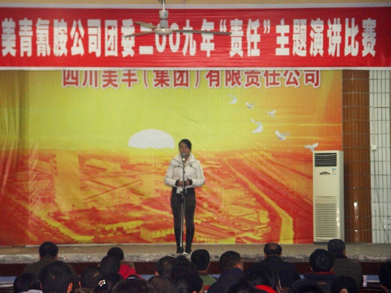 2009.11.27氰胺公司團(tuán)委舉辦“責(zé)任”主題演講比賽11月26日下午3時(shí),氰胺公司團(tuán)委在集團(tuán)公司大會(huì)議室舉行二OO九年“責(zé)任”主題演講比賽,氰胺公司總經(jīng)理?xiàng)畹铝?、副總?jīng)理任國建、陳實(shí)、謝安、何琳、共青團(tuán)射洪縣委書記于開出席演講比賽并擔(dān)任評了解更多