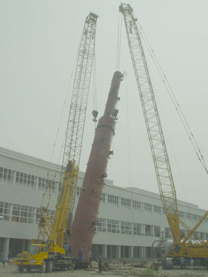 2007.08.212030項目第二批大型設(shè)備吊裝成功2007年8月18日下午3點正,隨著現(xiàn)場指揮員一聲哨響,四川美青氰胺有限責(zé)任公司“年產(chǎn)20萬噸合成氨聯(lián)產(chǎn)30萬噸尿素工程”繼重達305噸的尿素合成塔設(shè)備吊裝成功后,又一批大型設(shè)備開始吊裝,高42米、直徑了解更多
