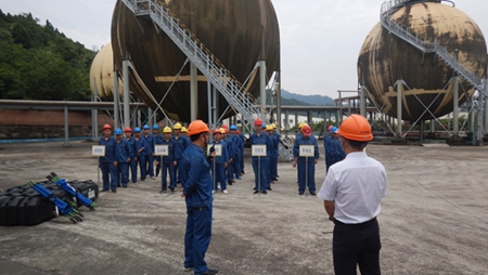此次演練情景模擬為我市各縣(市、區(qū))、園區(qū)突降大暴雨,涪江、郪江遂寧段水位持續(xù)上漲,個(gè)別地方即將達(dá)到保證水位,射洪市、經(jīng)開區(qū)、船山區(qū)、蓬溪縣多地多點(diǎn)發(fā)生洪水漫壩、城市內(nèi)澇、山體滑坡、道路沖毀、人員被困等洪澇及次生災(zāi)害。我公司液氨罐區(qū)D號(hào)球罐被山洪沖擊受損,發(fā)生液氨泄漏。災(zāi)情發(fā)生后,射洪市和我公司立即啟動(dòng)?;沸孤秾m?xiàng)應(yīng)急預(yù)案,組建現(xiàn)場(chǎng)指揮部,組織市直有關(guān)部門緊急趕赴災(zāi)害現(xiàn)場(chǎng),開展緊急疏散、力量調(diào)度、物資調(diào)集、環(huán)境監(jiān)測(cè)、倒罐搶修等災(zāi)害應(yīng)對(duì)處置工作。